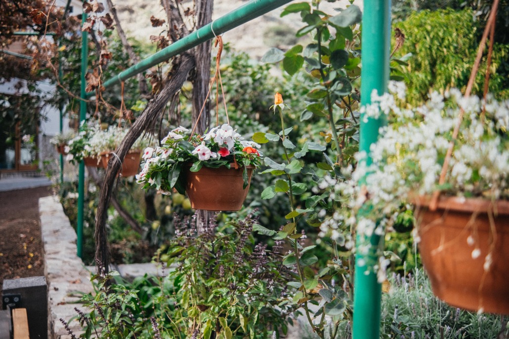 Los cafetos prosperan entre diversas frutas tropicales como limones, mangos, mandarinas, aguacates, plátanos, aceitunas y uvas.